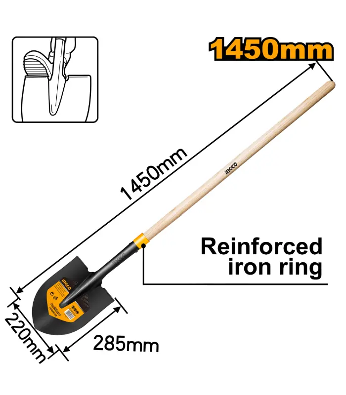 ЛОПАТА INGCO СО ШПИЦ АШОВ СО ДОЛГА РАЧКА HSSH0203
