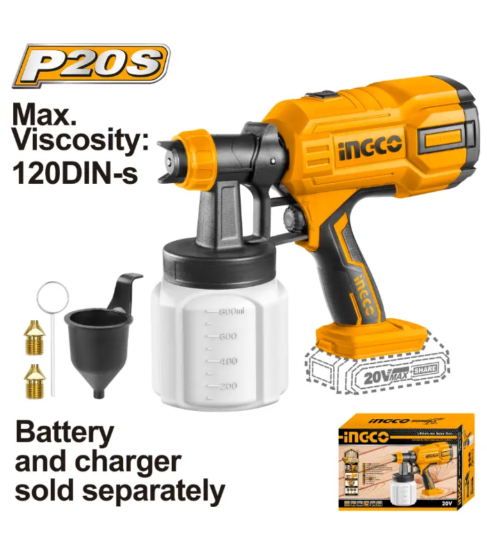 БАТЕРИСКИ Пиштол за фарбање INGCO СОЛО 20V БЕЗ БАТЕРИИ CSGLI2003