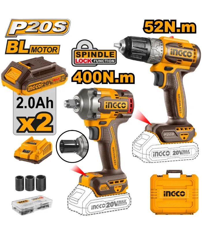 1x Ingco безжичен ударен клуч 400Nm 20V (CIWLI2040)