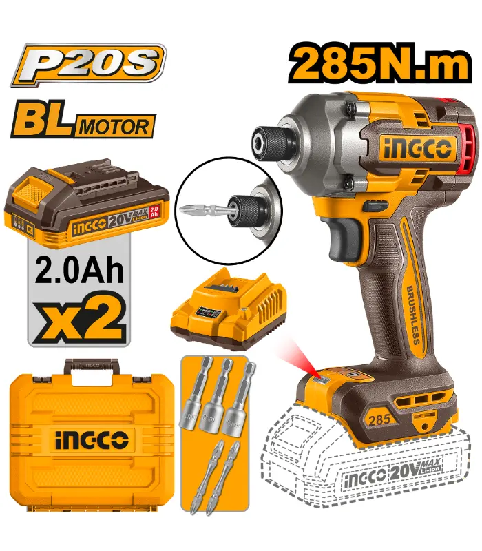 УДАРНА ШTРАФИЛИЦА 285Nm 20V 2×2.0Ah БАТЕРИЈА INGCO CIRLI2028
