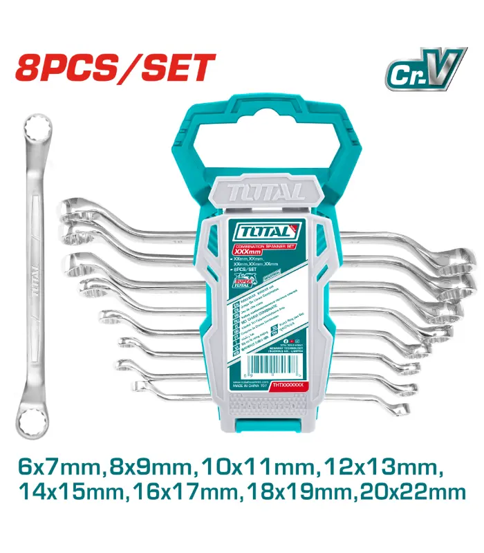 Вклучува: 6x7mm, 8x9mm, 10x11mm, 12x13mm, 14x15mm, 16x17mm, 18x19mm, 20x22mm